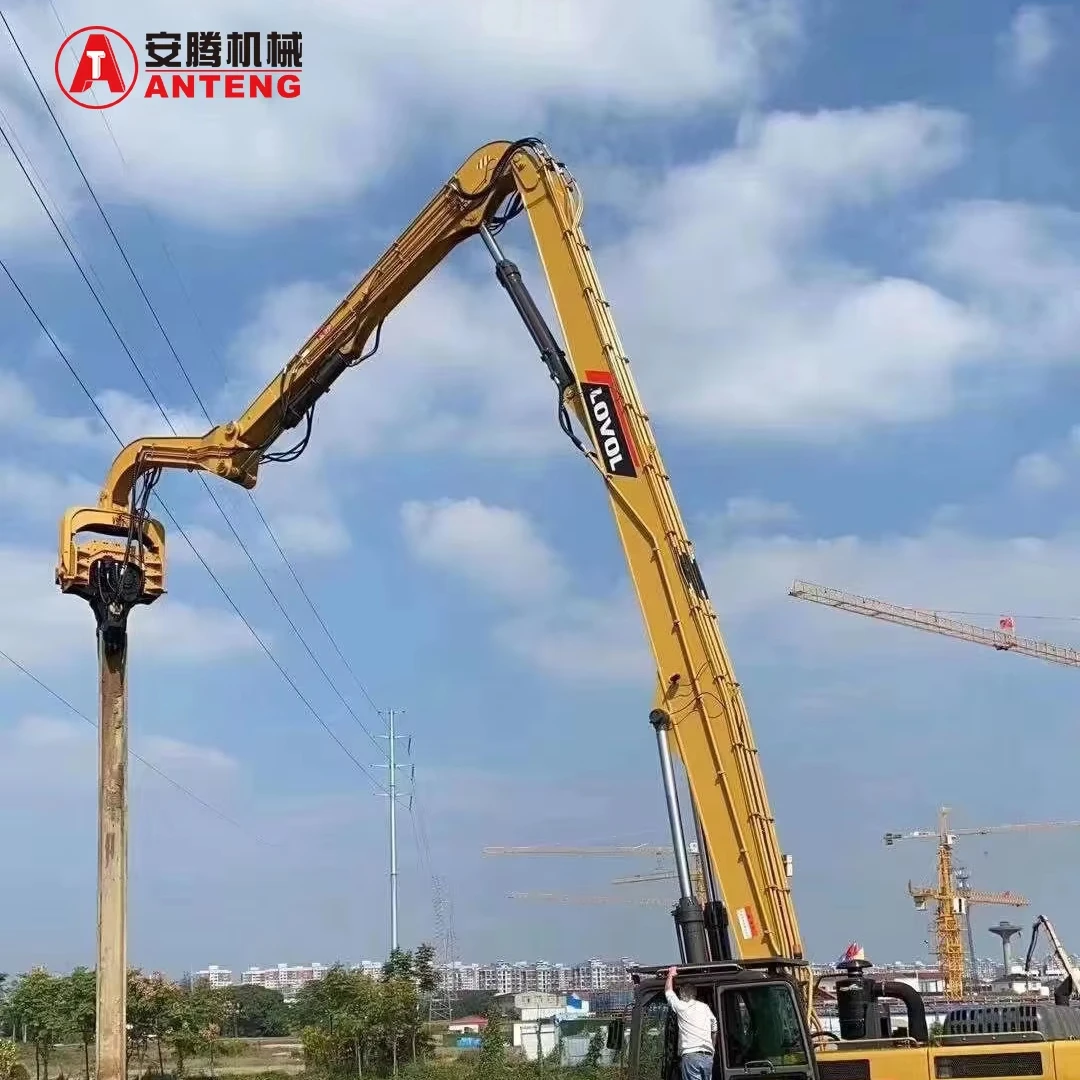 Los equipos de hincado ANTENG son montados en excavadora, de alta frecuencia y tipo vibratorio, ideales para manipular, inclinar, hincar y extraer diferentes tipos de pilotes en una amplia gama de condiciones del terreno y del suelo.