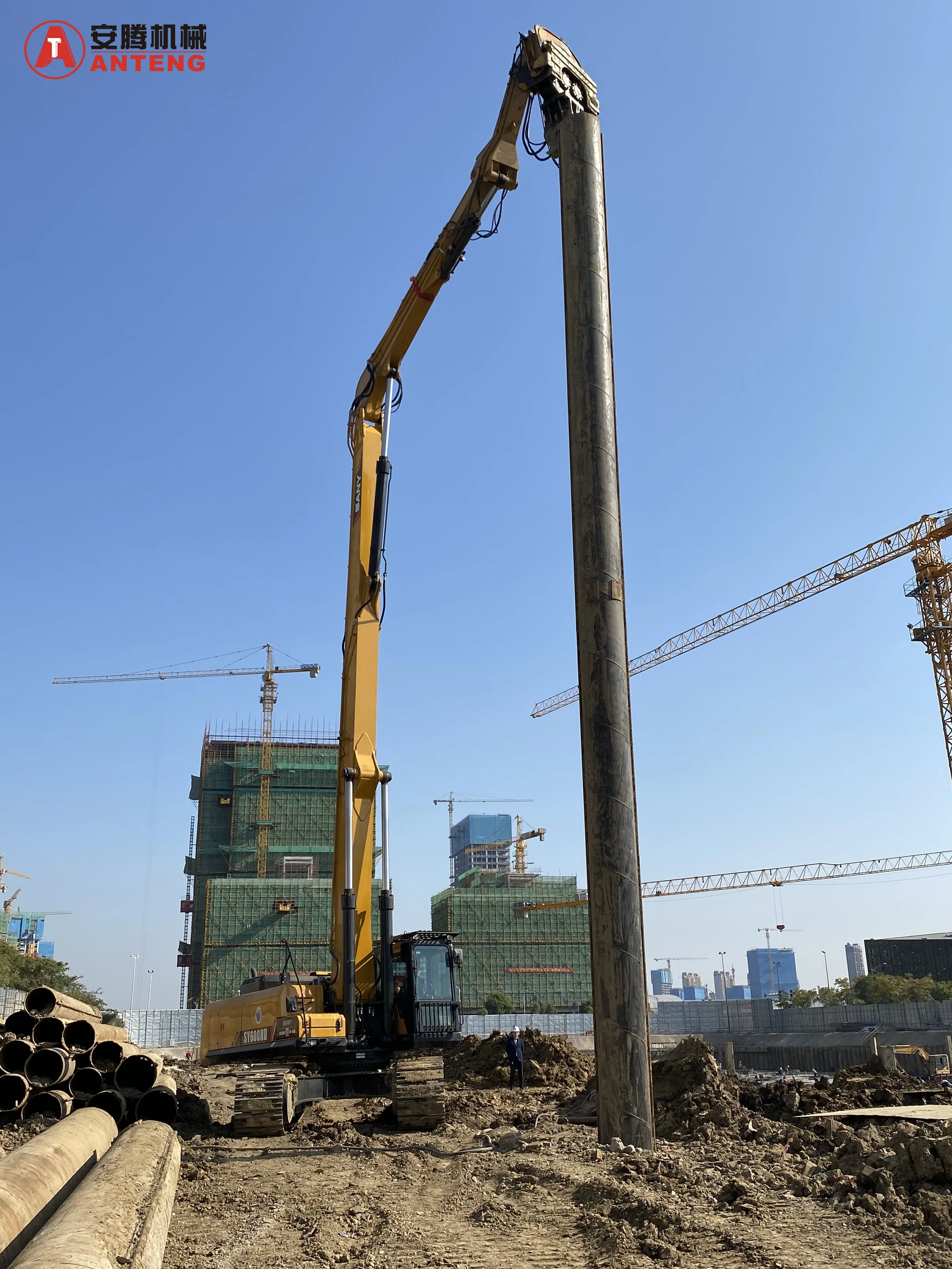 El martillo vibratorio hidráulico de alta frecuencia V700 es una solución de hinca potente y eficiente diseñada para aplicaciones montadas en excavadoras. Este avanzado martillo vibratorio ofrece un rendimiento superior gracias a su funcionamiento de alta frecuencia, lo que lo hace ideal para hincar y extraer tablestacas, vigas H y pilotes tubulares en diversas condiciones del suelo. Con su robusto sistema hidráulico y un control preciso de la frecuencia, el V700 garantiza una transferencia máxima de energía mientras minimiza el impacto acústico y de vibración sobre las estructuras circundantes. La unidad cuenta con una construcción duradera, excelente estabilidad y una operación amigable, lo que la hace adecuada tanto para proyectos de construcción como de cimentación. Su diseño versátil permite una rápida adaptación a la mayoría de los modelos de excavadoras, mejorando la productividad en el lugar de trabajo y reduciendo el tiempo de instalación. Ya sea trabajando en la construcción de puertos, cimentaciones de puentes o muros de contención, el V700 ofrece soluciones de hinca confiables y rentables para aplicaciones constructivas exigentes.