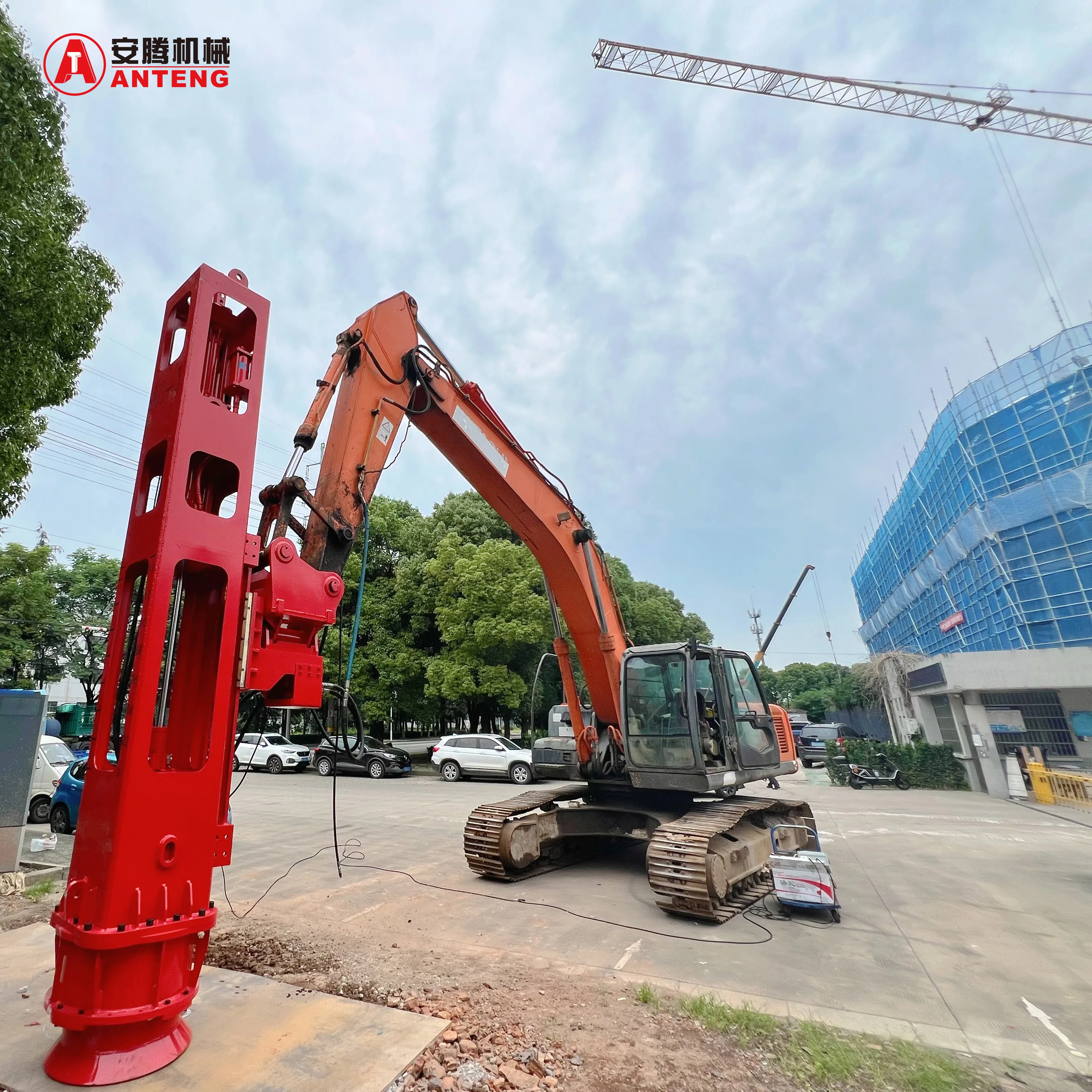 El martillo hidráulico de impacto ANTENG utiliza aceite hidráulico como medio principal de trabajo y depende de la presión hidráulica para elevar el martillo. Cuando el martillo se eleva, el aceite se drena rápidamente o se dirige hacia el lado opuesto. Sin suministro de aceite, el martillo cae rápidamente. La presión generada por la caída del martillo se utiliza para golpear el pilote.