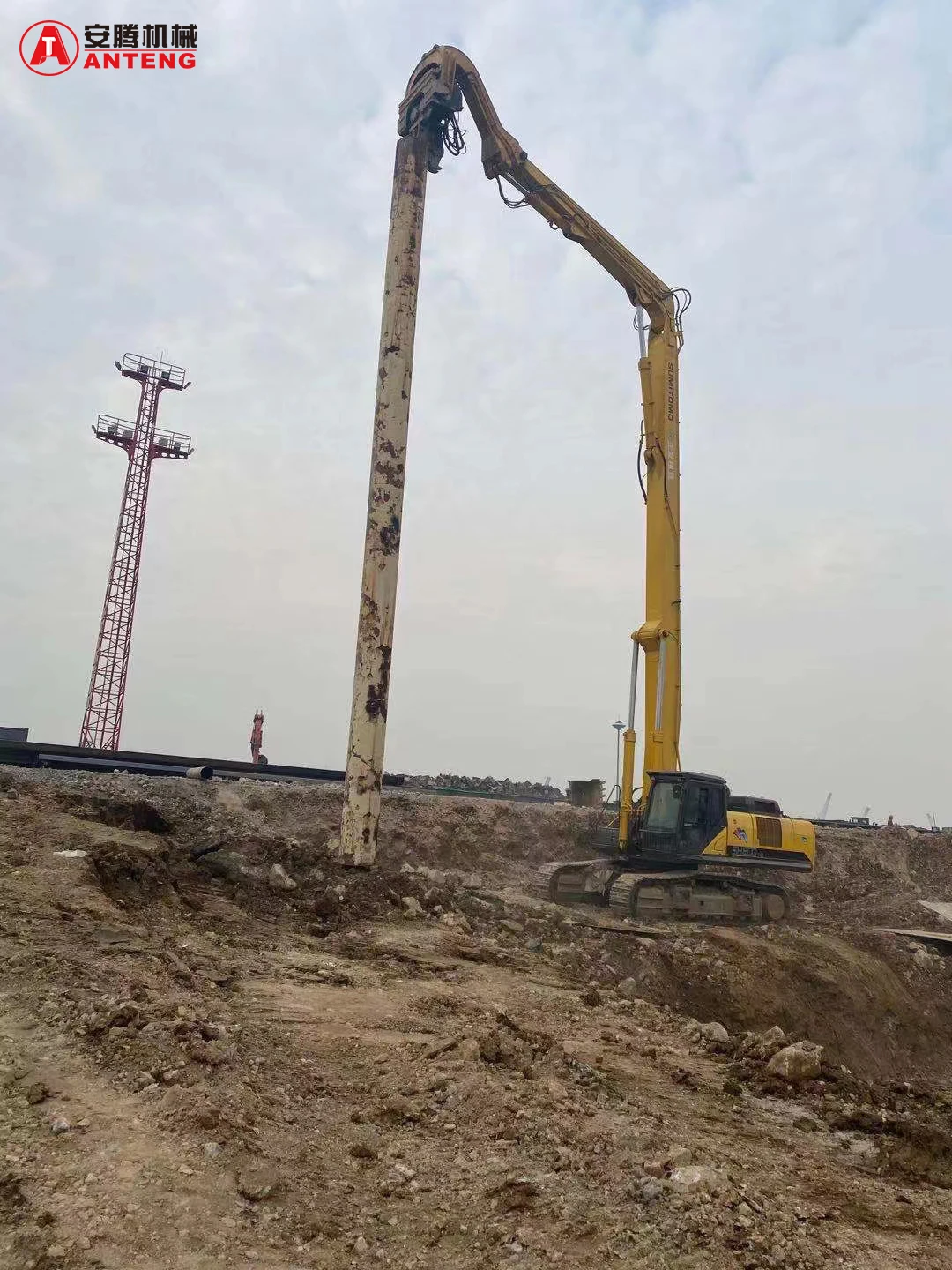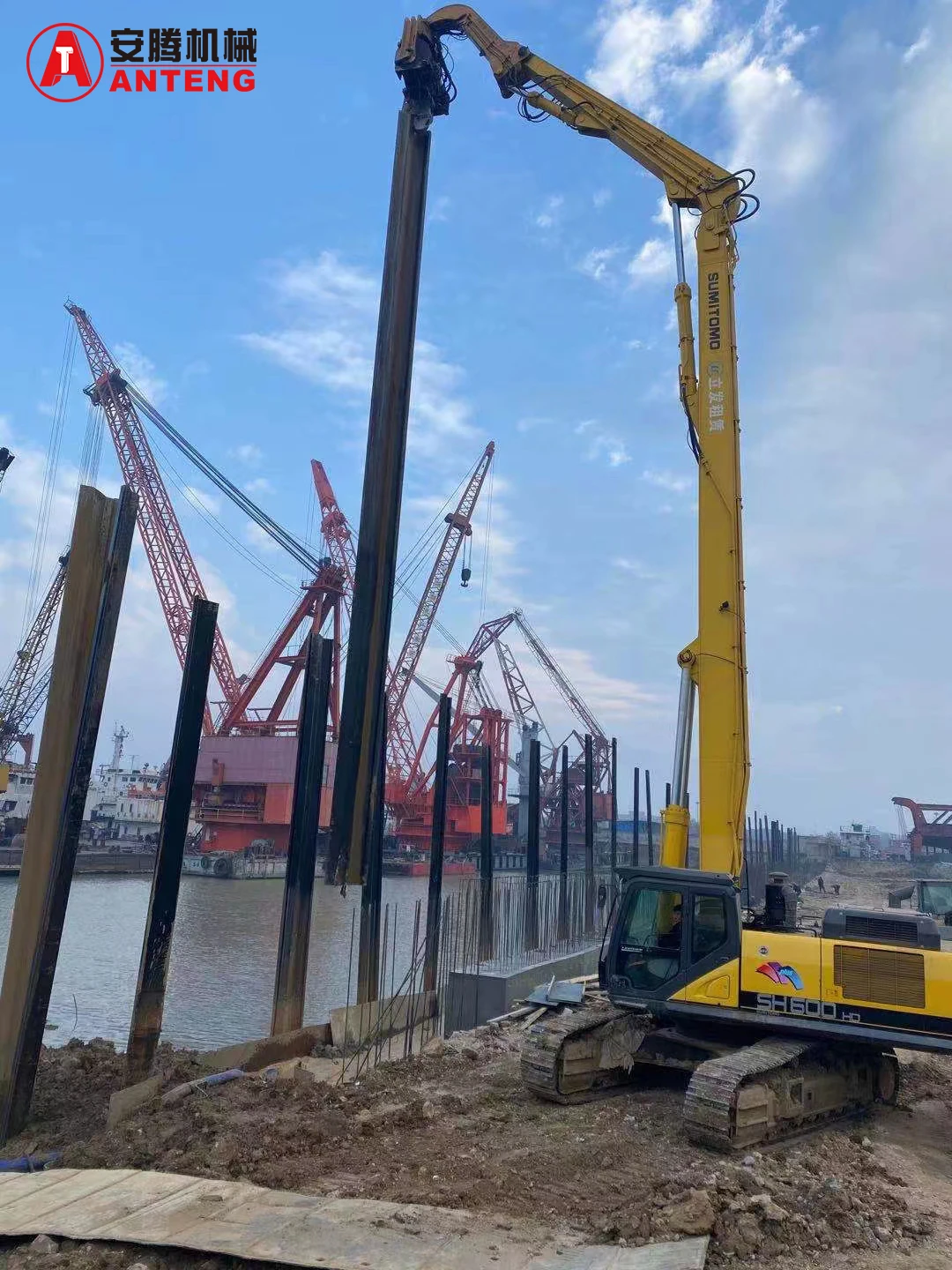 Los martillos de pilotes ANTENG son del tipo vibratorio, de alta frecuencia y se montan en excavadoras, para manipular, inclinar, hincar y extraer distintos tipos de pilotes en una amplia gama de condiciones del terreno y del suelo. Equipados con mordazas capaces de hinca una amplia gama de pilotes, incluyendo tablestacas, pilotes H, pilotes I, pilotes tubulares de acero, pilotes cuadrados de hormigón y otros tipos de secciones de pilotes.