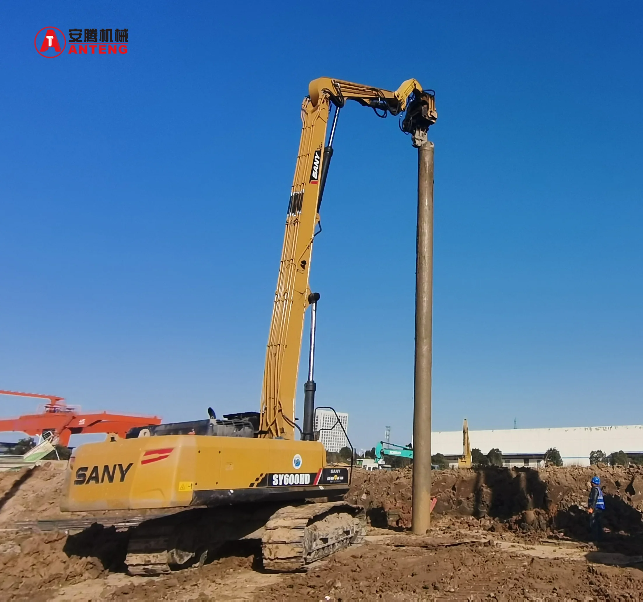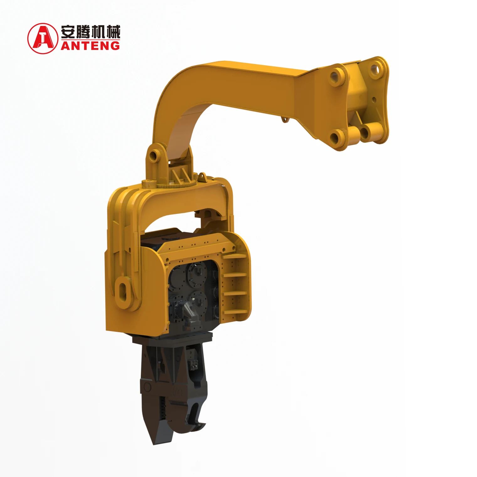 The 60Ton Excavator Mounted Pile Hammer is a powerful and efficient vibratory hammer designed for demanding pile driving applications. Featuring an impressive centrifugal force, this robust attachment transforms your excavator into a versatile piling machine. The vibro hammer delivers consistent, high-frequency vibrations that effectively drive or extract various types of piles, including steel sheets, H-beams, and concrete piles. Its excavator mounting system ensures quick installation and excellent mobility on job sites, while the strong build quality guarantees reliable performance in challenging conditions. The unit's advanced vibration technology minimizes soil disturbance and reduces noise compared to traditional impact hammers, making it ideal for urban construction projects. Perfect for foundation work, retaining walls, and marine construction, this pile hammer combines power, efficiency, and versatility to maximize your productivity.